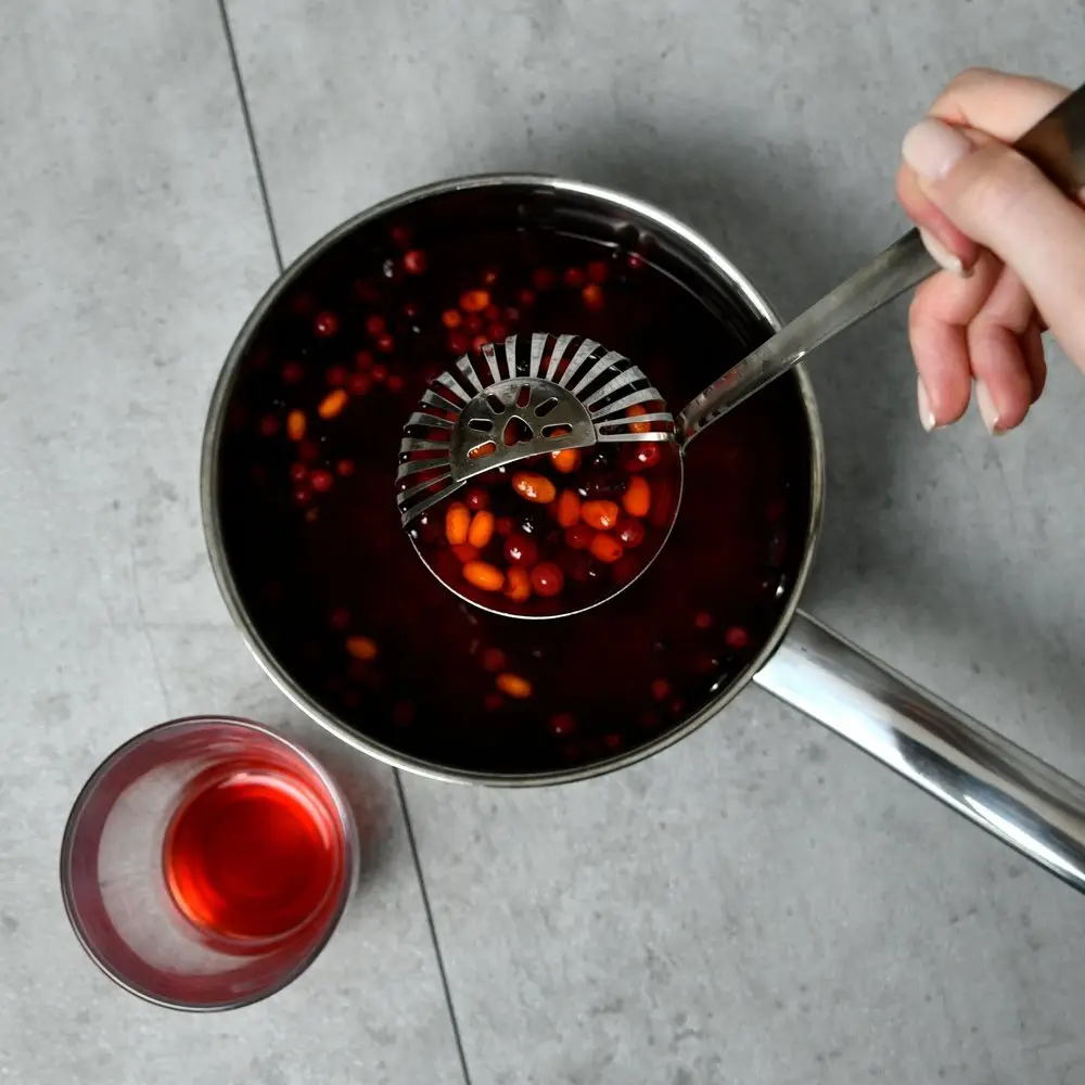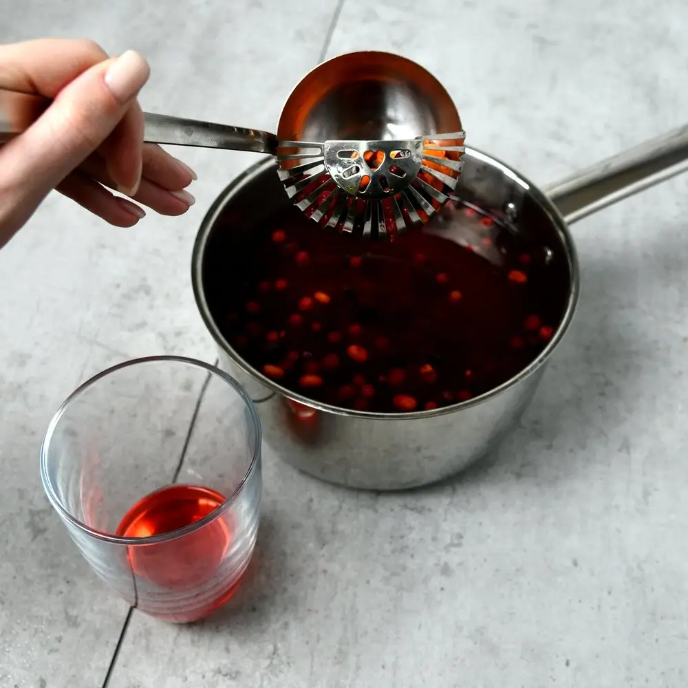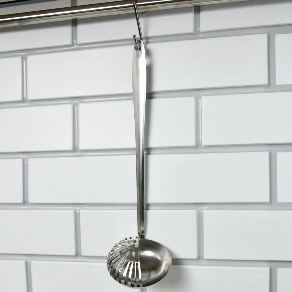 Приспособления 2-в-1 — это всегда выигрышно для любой кухни. Половник-шумовка решает 2 задачи: во-первых, используется для раскладывания первых блюд, разливания компотов, морсов, киселей; во-вторых, поможет вам снять пенку, разложить вареники и пельмени по тарелкам.