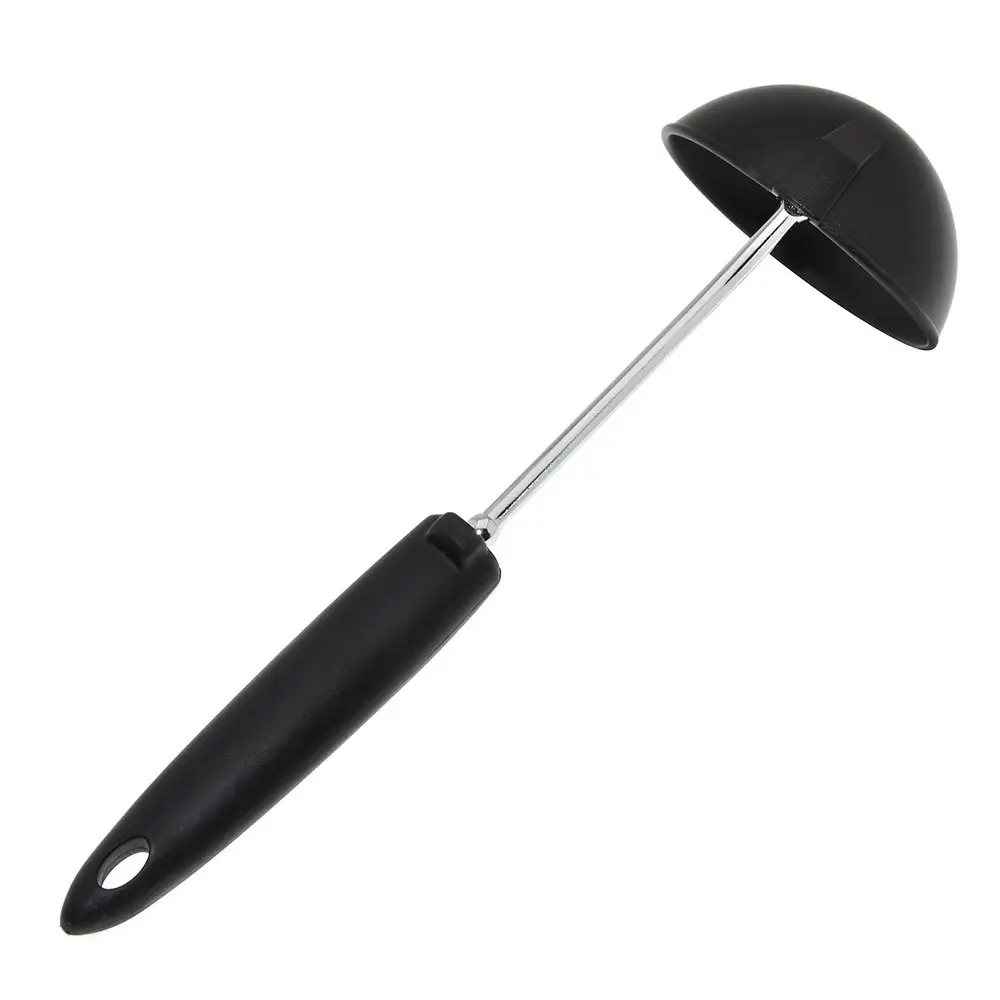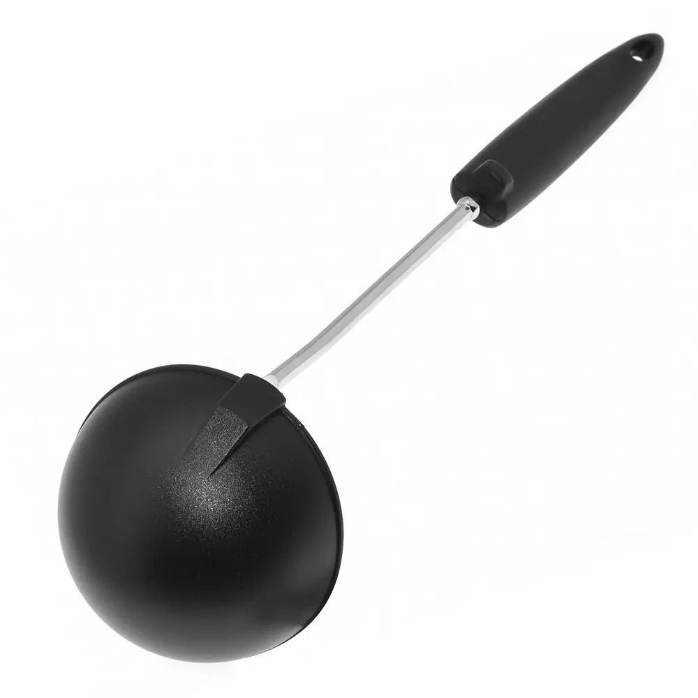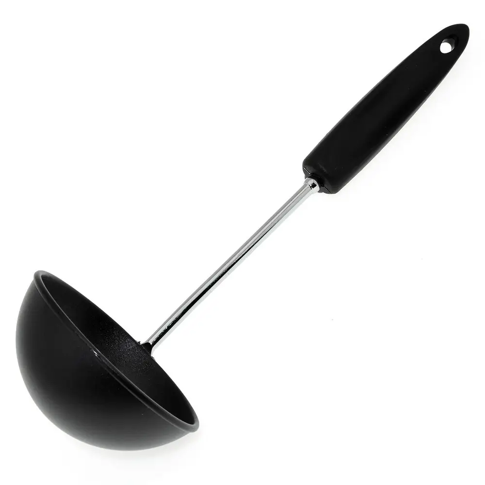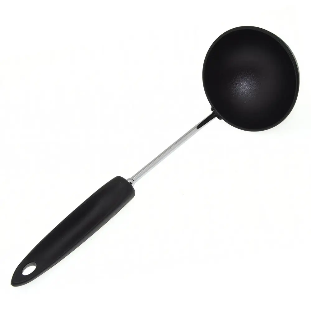 Половник — незаменимое приспособление, которое понадобится на любой кухне. Инструмент используется для порционного раскладывания первых блюд, разливания компотов, киселей и других жидкостей. Приспособление выполнено в классическом дизайне, который сочетается практически с любым интерьером и другой посудой. Рабочая часть изготовлена из пластмассы (нейлон), что позволяет зачерпывать половником свежеприготовленные горячие блюда без риска повредить материал. Ручка изготовлена из хромированной стали и пластмассы (полипропилен).