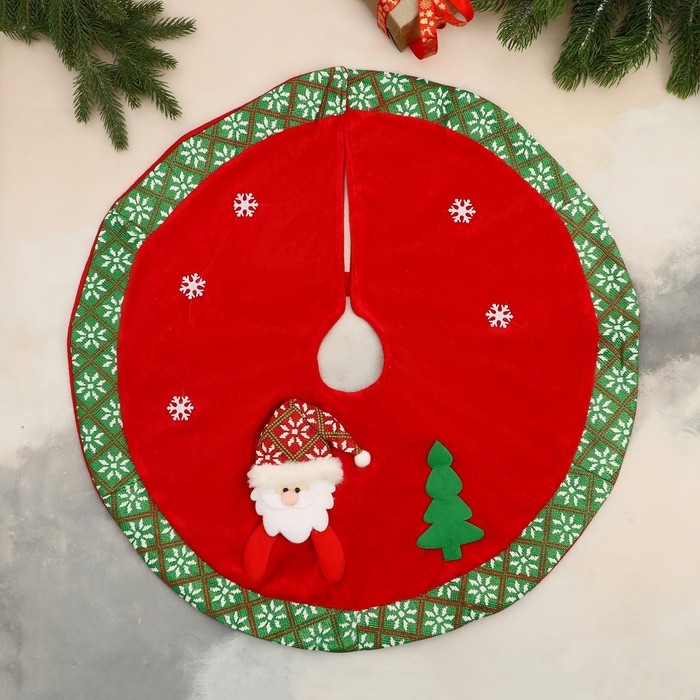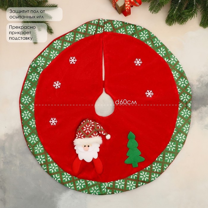 Полянка под ёлку "Новогодние причуды" Дед Мороз у ёлки, d-60 см, красно-зелёный