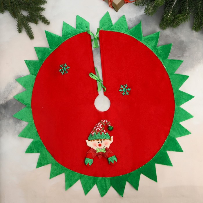 Полянка под ёлку "Новогодние сюрпризы" гномик и снежинки, d-60 см, красно-зелёный
