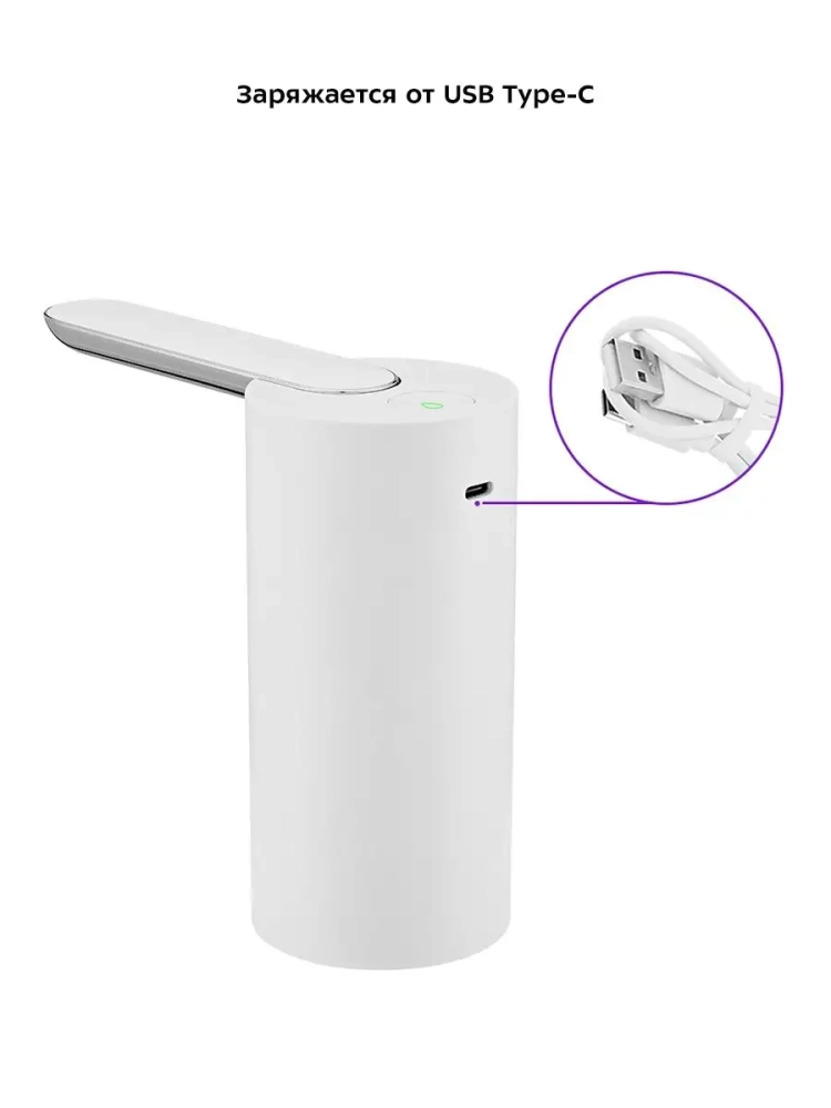 Устройство имеет простое управление одной кнопкой. У помпы есть функция автоотключения через 10 секунд или 1 минуту. За 10 секунд время помпа перекачает 230 мл воды, а за минуту — 1,3 л. Благодаря работе от аккумулятора помпу для воды можно установить в любом месте или взять с собой. Одного заряда аккумулятора хватает на прокачку 80–90 литров воды. Складная конструкция позволяет держать отверстие выхода воды в чистоте, а также экономит место при хранении и транспортировке.