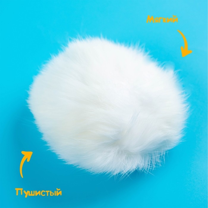 Помпон из натурального меха зайца, размер 1 шт.: 6 см, цвет белый