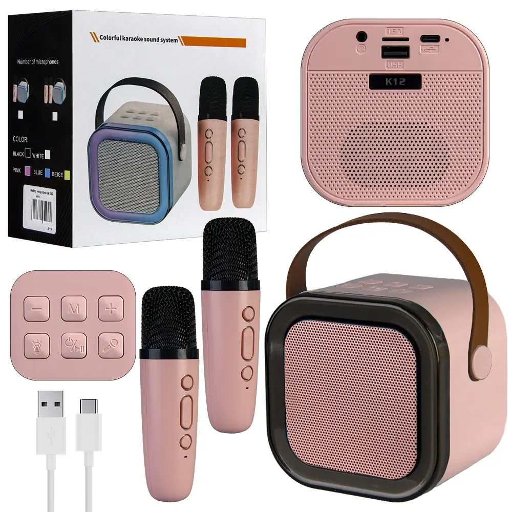 Портативная акустика с 2 микрофонами K12 Розовая