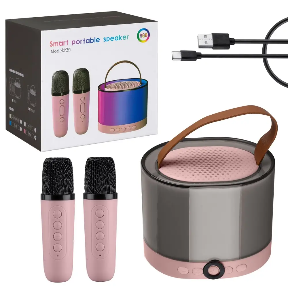 Портативная акустика с 2 микрофонами K52 розовый (40 шт/кор)