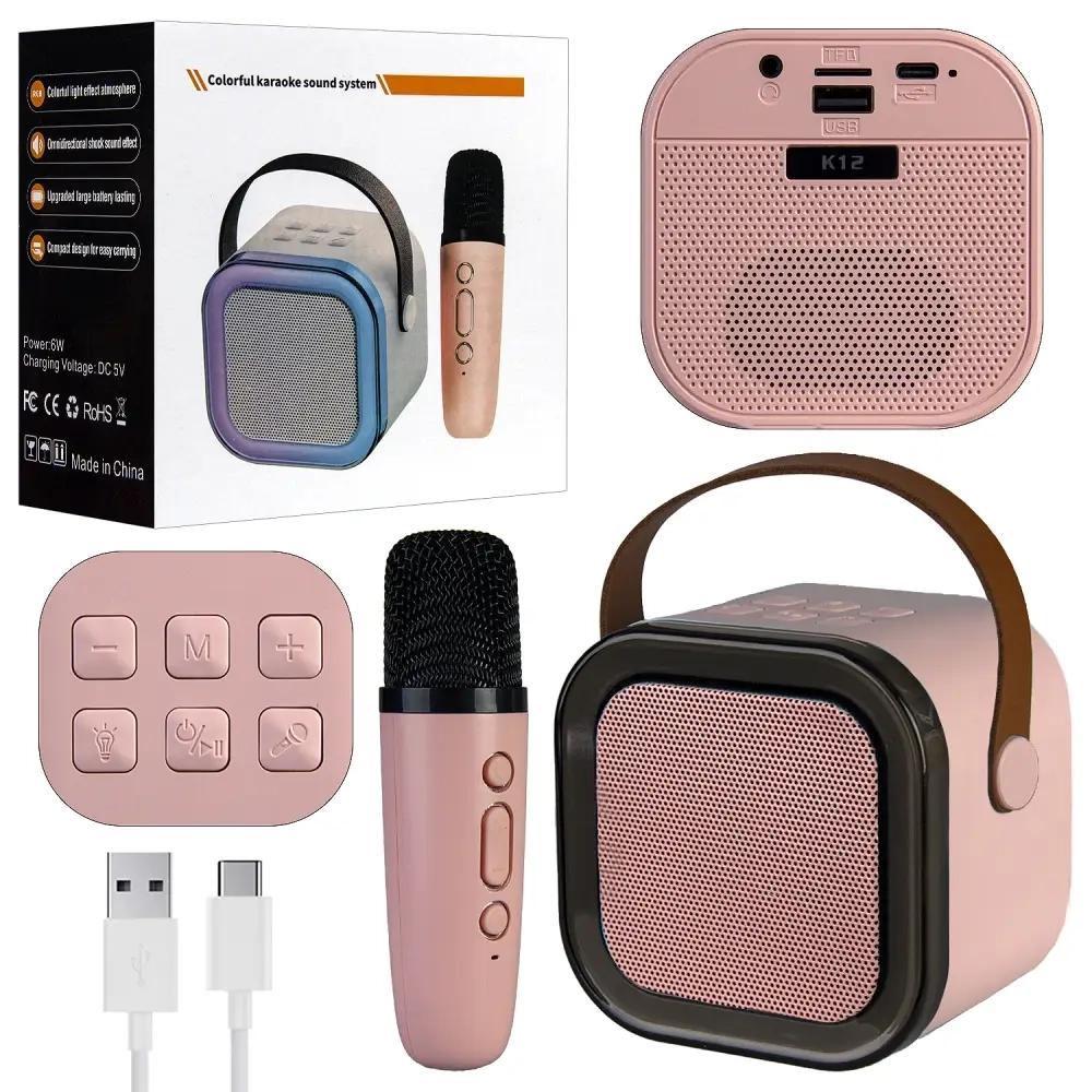 Портативная акустика с микрофоном K12 Розовая