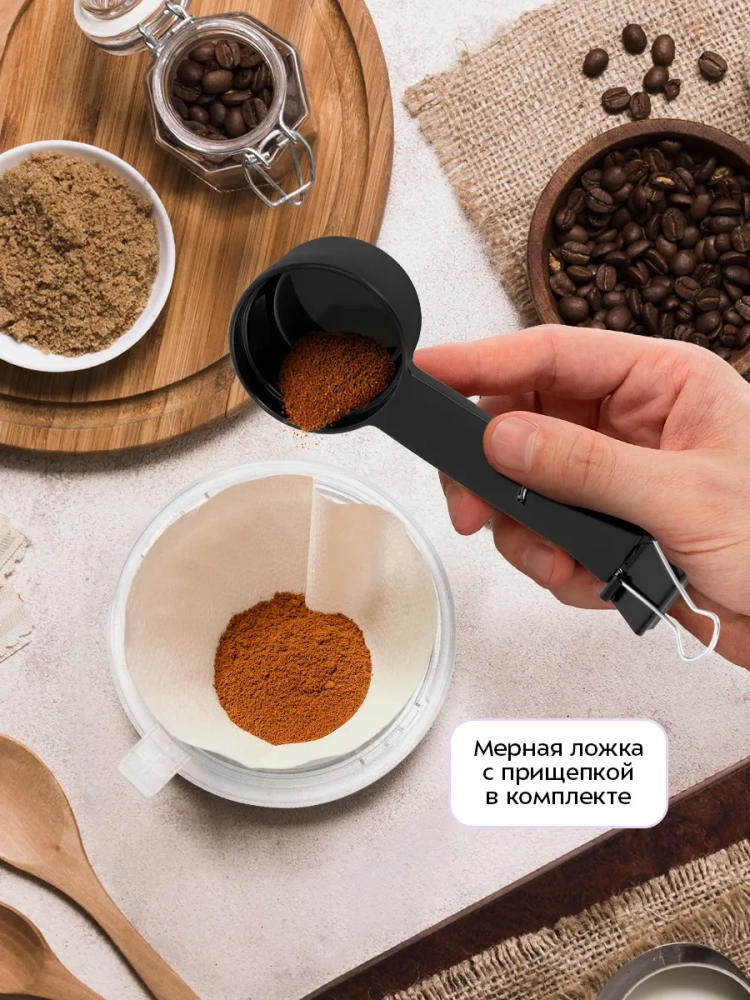 Кофеварка занимает мало места, она проста и удобна в использовании, а благодаря работе от батареек вы можете брать ее с собой в поездки.