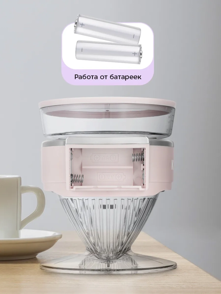 Кофеварка работает от двух батареек типоразмера АА (батарейки в комплект не входят).