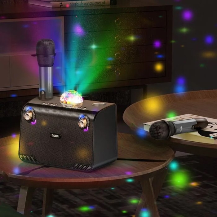 Портативная караоке система Hoco BS41 Plus, 15 Вт, ВТ 5.0, 4800 мАч, 2 микрофона, чёрная