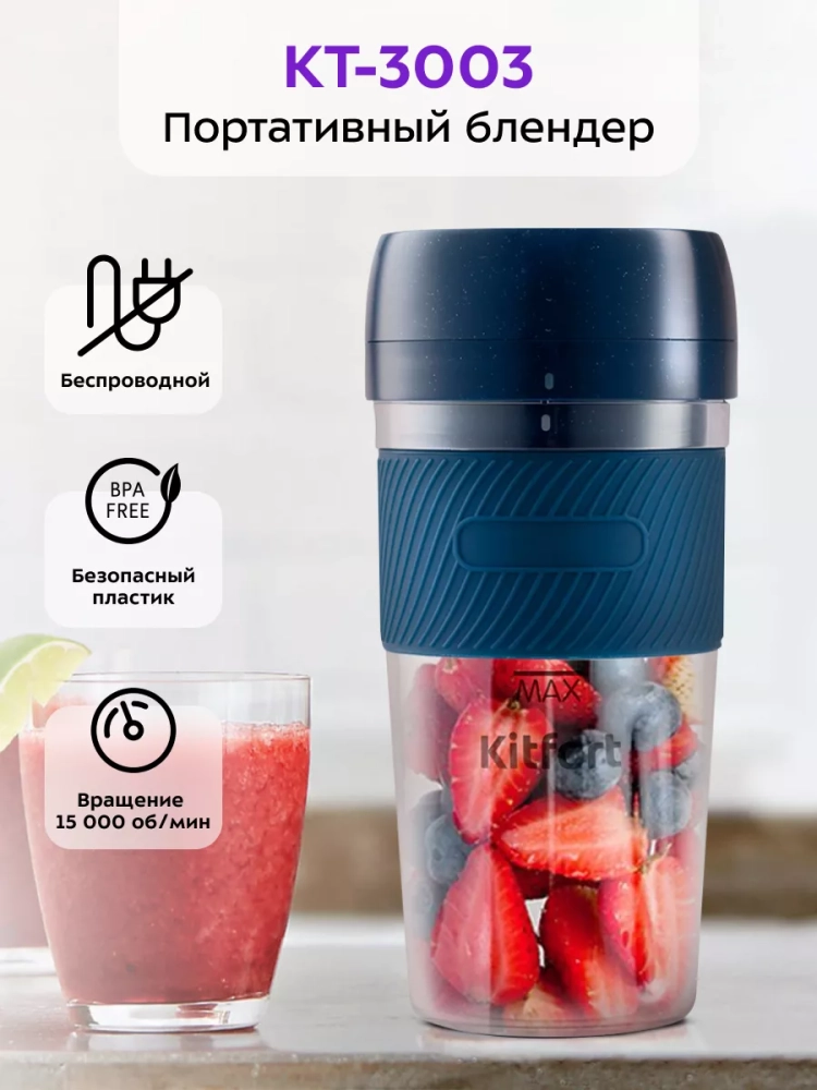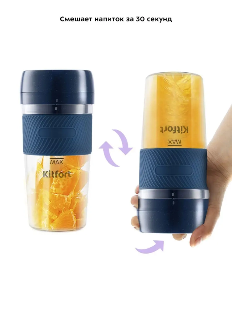 Портативный блендер КТ-3003 решает все эти проблемы, поскольку работает от аккумулятора. Он смешает ваш напиток за 30 секунд.