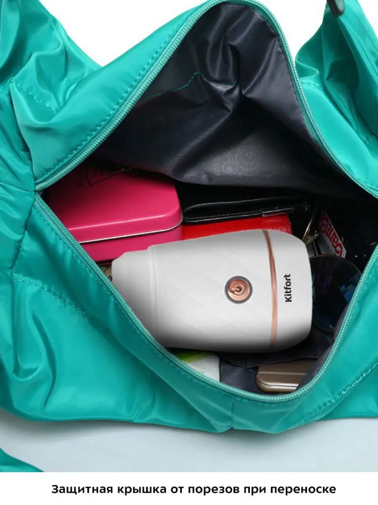 Благодаря дополнительной крышке на моторный блок вы сможете безопасно переносить и хранить его отдельно без бутылки. Ножи, спрятанные под крышкой, не смогут порвать сумку или испортить упаковку.
