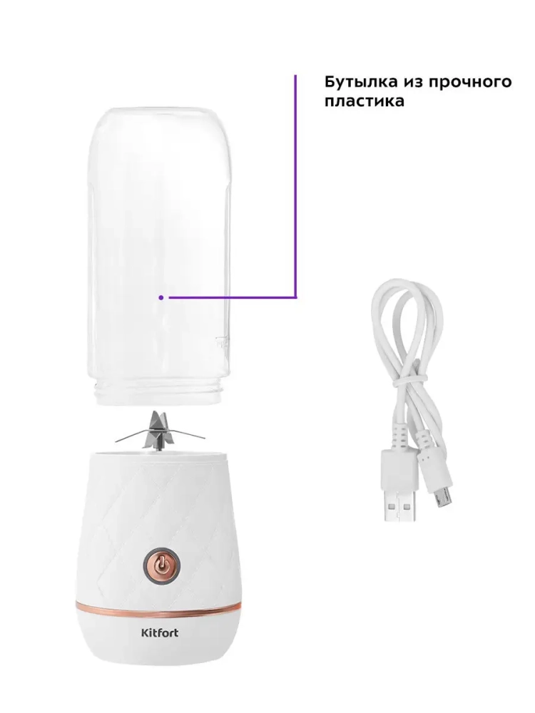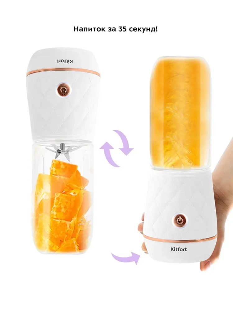 КТ-3006 работает от аккумулятора и заряжается от USB. Он незаменимый помощник для приготовления смузи, милкшейков, домашнего детского питания, протеиновых и детокс-коктейлей, супов-пюре и множества других блюд.