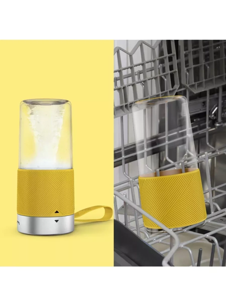 Просто добавьте ингредиенты вместе с небольшим количеством воды или молока, затем дважды нажмите кнопку СТАРТ, чтобы перемешать. Портативный блендер Lightmix автоматически останавливается через 40 секунд. Наслаждайтесь 11 циклами смешивания на одной зарядке благодаря высококачественному литий-ионному аккумулятору емкостью 1200 мАч и зарядному кабелю с магнитным разъемом. Для тщательной очистки лезвия снимаются, а контейнер можно мыть в посудомоечной машине.