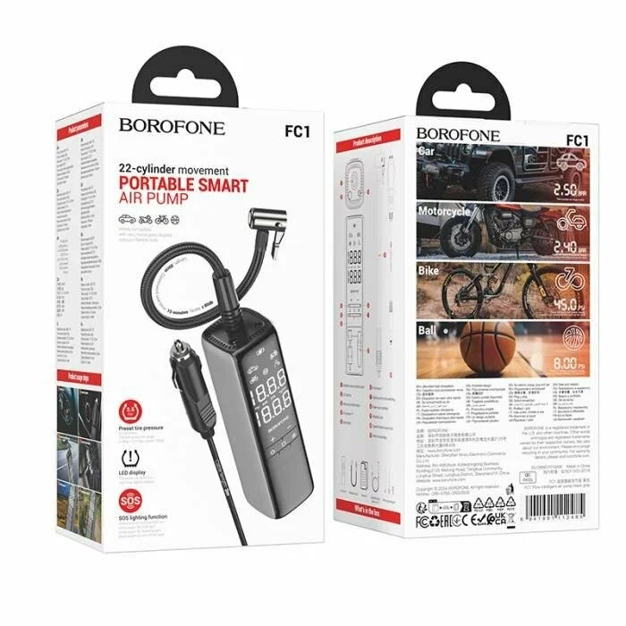 Портативный насос для накачки шин BOROFONE FC1 с ЖК-дисплеем точного давления