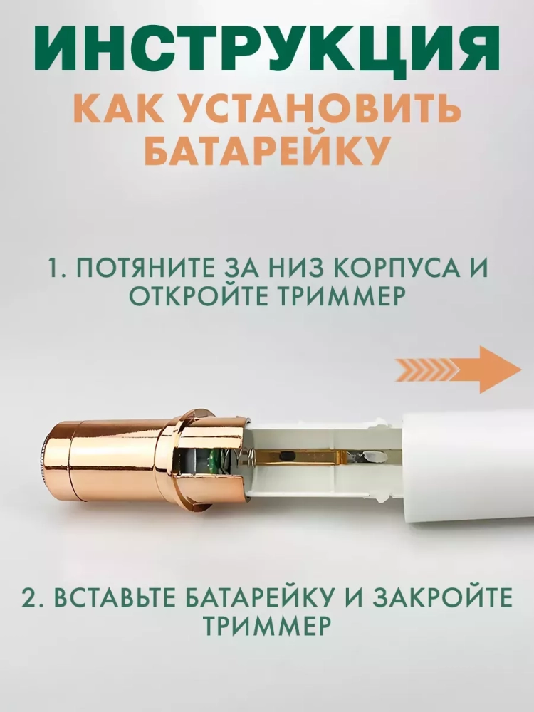 Триммер косметический избавит Вас от нежелательных волос. Так же эпилятор можно использовать для коррекции бровей. Он поможет поддерживать элегантный образ не выходя из дома. Незаменимая вещь и отличный подарок для любой женщины! Кроме использования дома, триммер женский для носа и ушей удобно брать с собой в поездку, путешествия, поход, он поместится даже в карман. Эпилятор для бровей женский- прекрасный подарок девушке. Мини эпилятор удобно брать с собой в любую поездку. Работает от одной батарейки АА. Нас можно найти по поиску ручка триммер, использовать как бритва для лица, удаление усов на лице у девушек, удаление волос ушей, обработка бикини. Эпилятор для лица Flawless facial hair remover мгновенно и безболезненно удалит лицевые волоски возле губ, на подбородке, щеках. Отлично заменяет щипчики, пинцеты, ножницы и бритву. Триммер для бровей женский складной удобно хранить и использовать в дороге. Благодаря эпилятору для лица Flawless, вы всегда будете ощущать гладкость на коже, а ваш макияж будет выглядеть безупречно. Аксессуар обладает компактными размерами и работает от одной батарейки, поэтому вы можете взять его с собой в любую поездку! Питание: 1 батарейка типа АА (не входит в комплект).