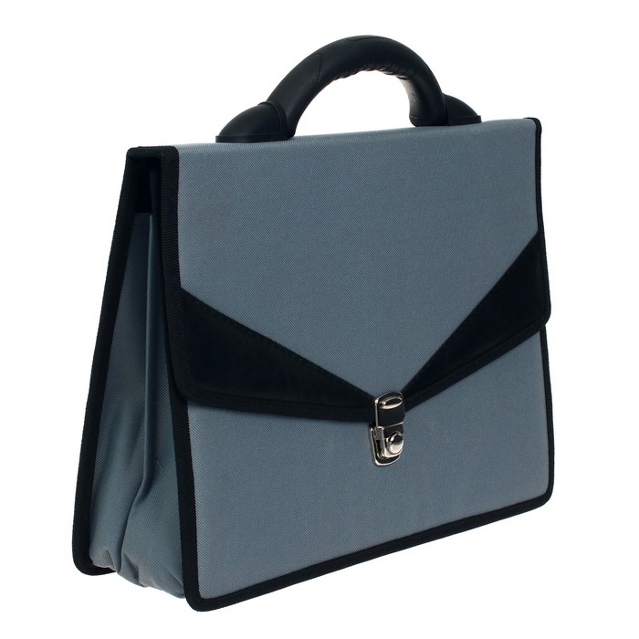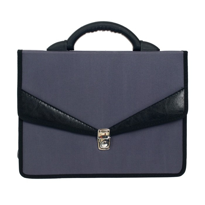 Портфель с пластиковой ручкой, меняющая положение. Портфель изготовлен из ткани, используемой в Fashion-индустрии сумок серого цвета. Отделка, дополнительные вставки из К/З «Люкс», 2 – отделения.