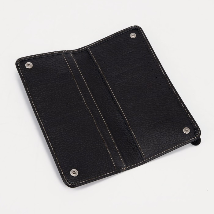 Портмоне мужское на кнопках, для купюр, для карт, цвет чёрный