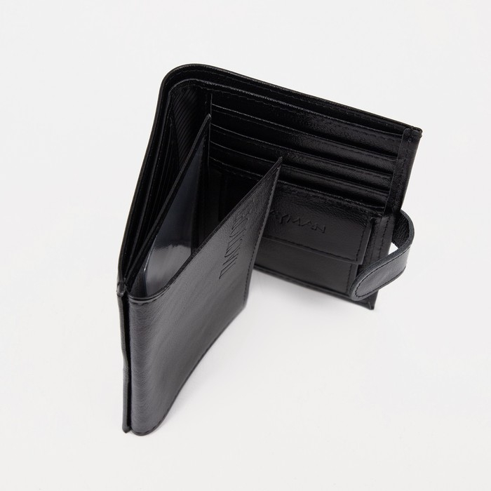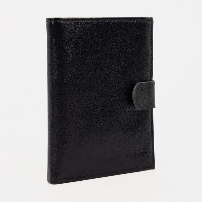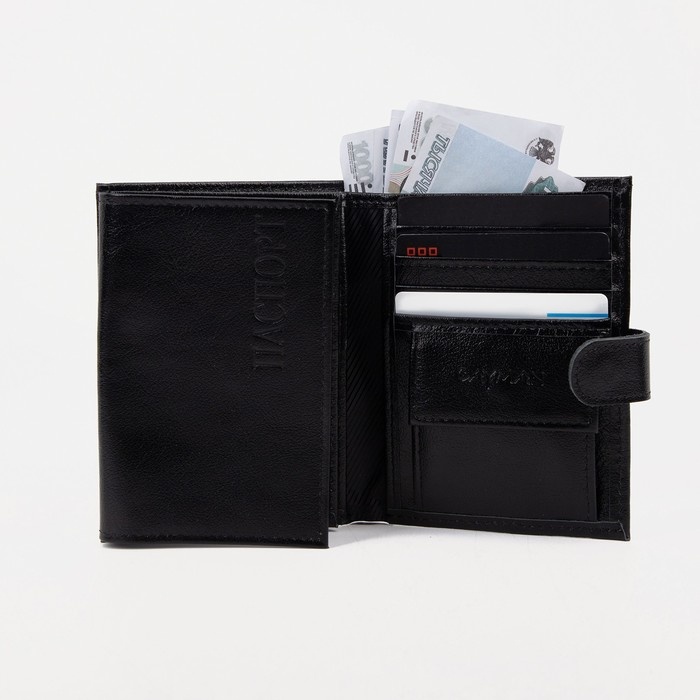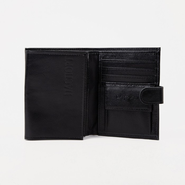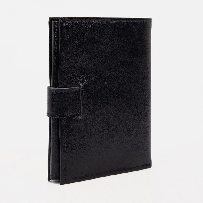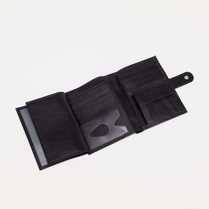 Портмоне мужское на кнопке 3 в 1 для автодокументов и паспорта, для карт, для монет, цвет чёрный