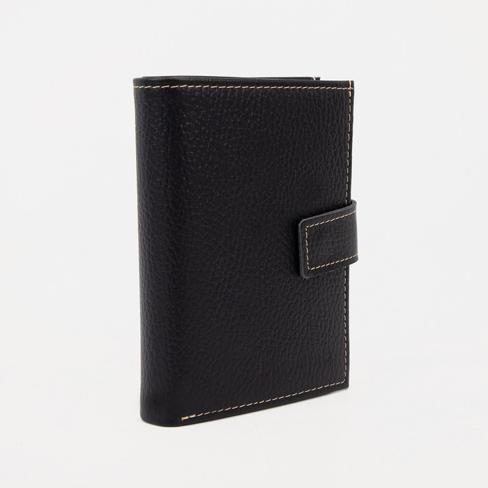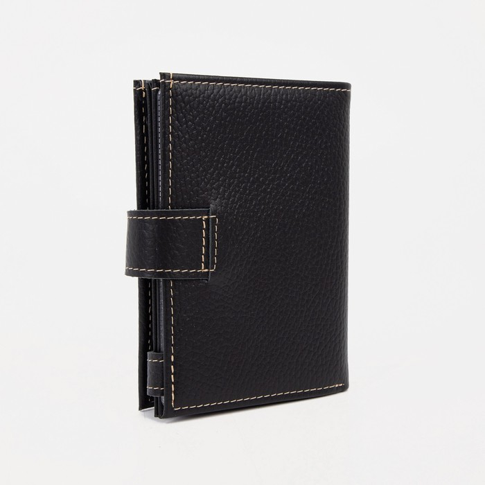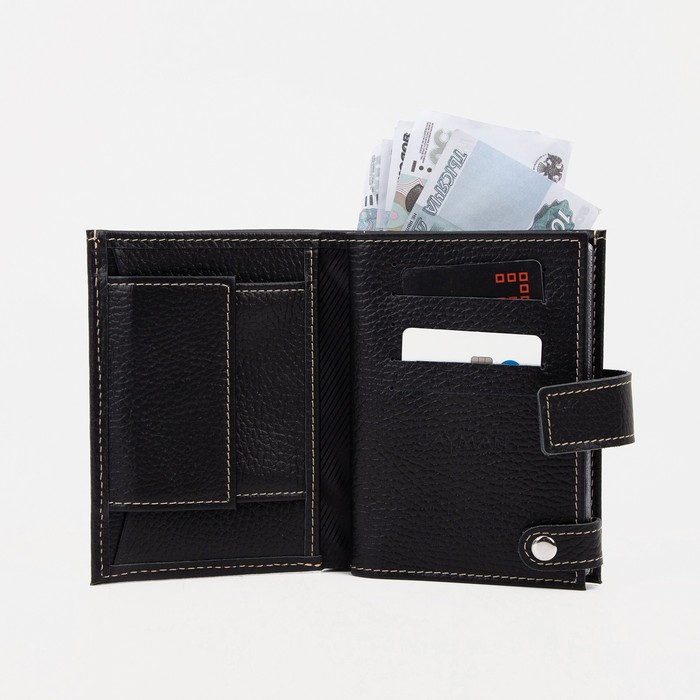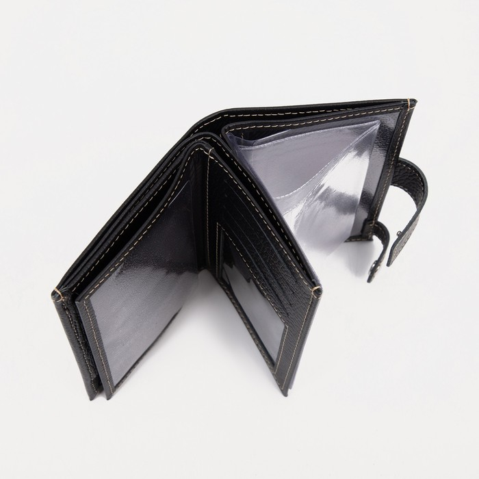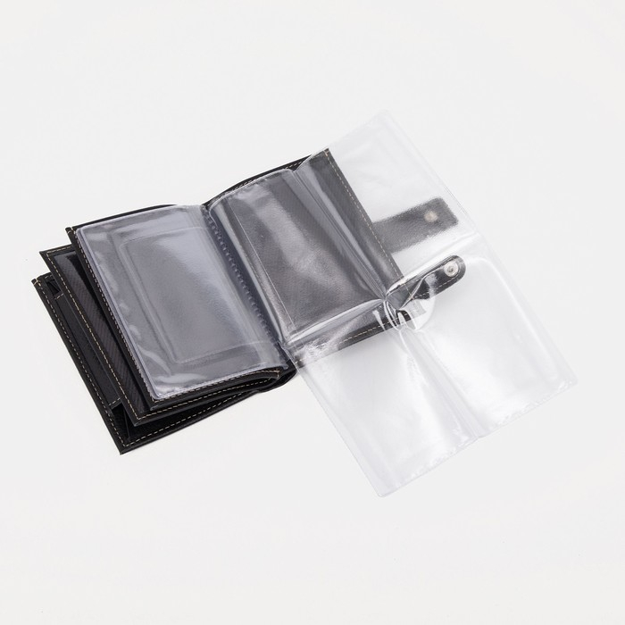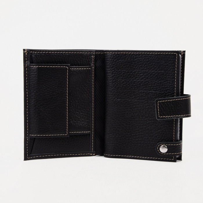 Портмоне мужское на кнопке 3 в 1, отдел для автодокументов и паспорта, цвет чёрный
