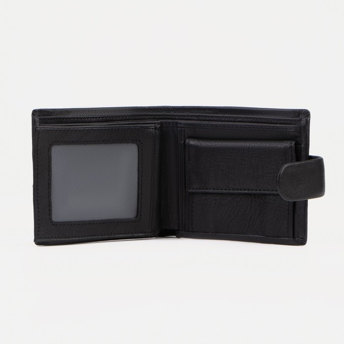Портмоне мужское на кнопке, для купюр, для карт, для монет, цвет чёрный