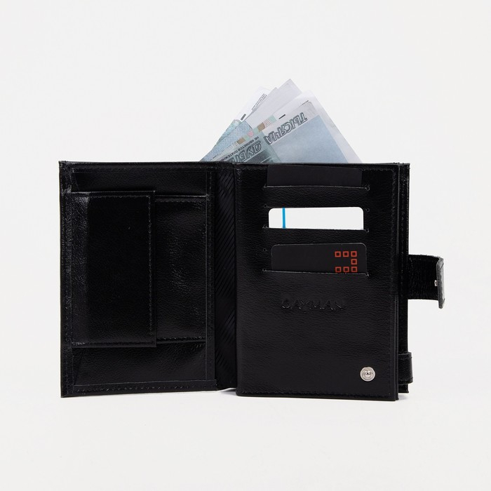 Портмоне мужское на кнопке, отдел для автодокументов и паспорта, цвет чёрный