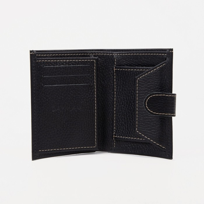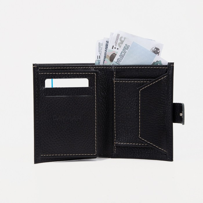 Портмоне мужское на кнопке, отдел для документов, цвет чёрный