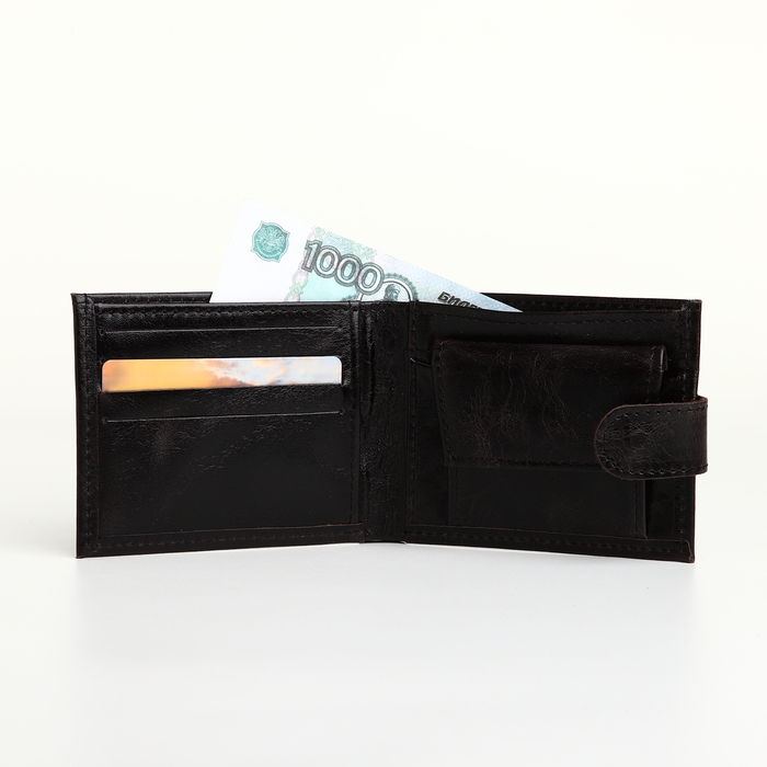 Портмоне мужское на кнопке, TEXTURA, для карт, для монет, цвет чёрный