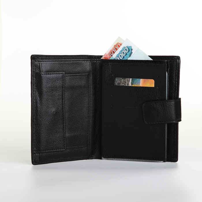 Портмоне мужское на магните 3 в 1, отдел для автодокументов, паспорта, цвет чёрный