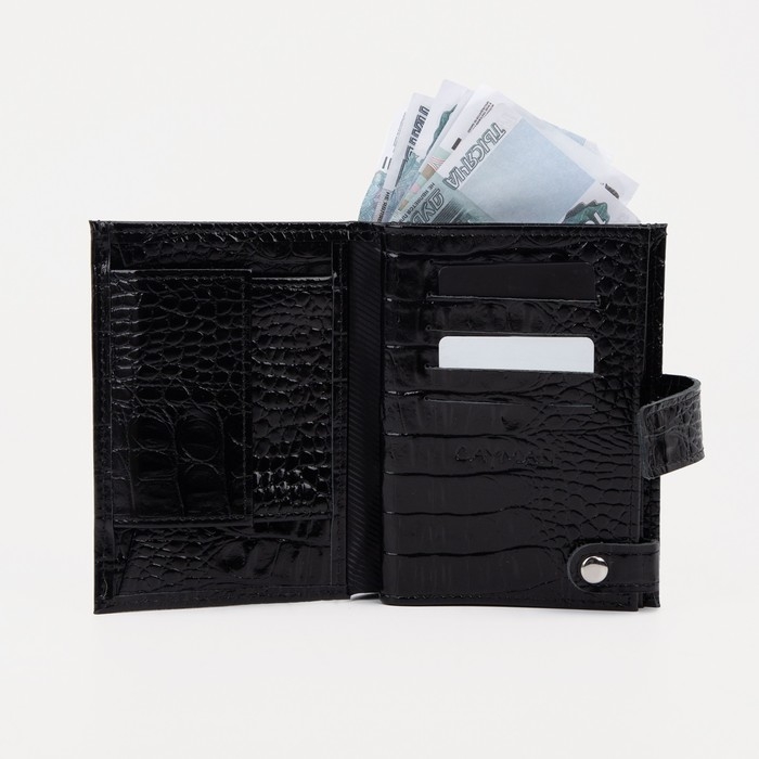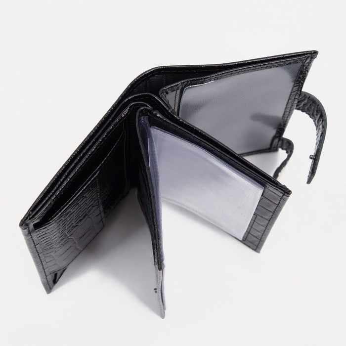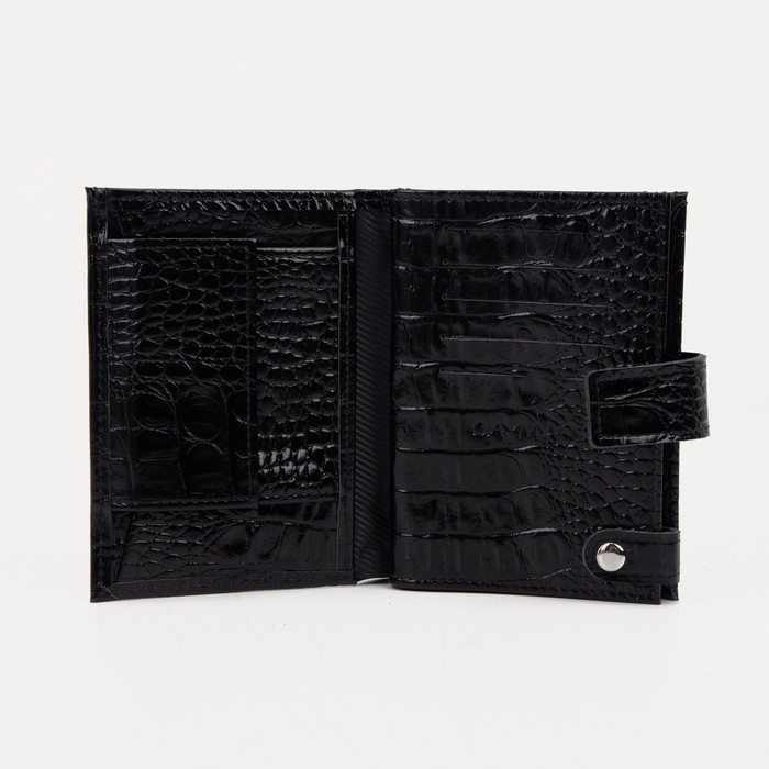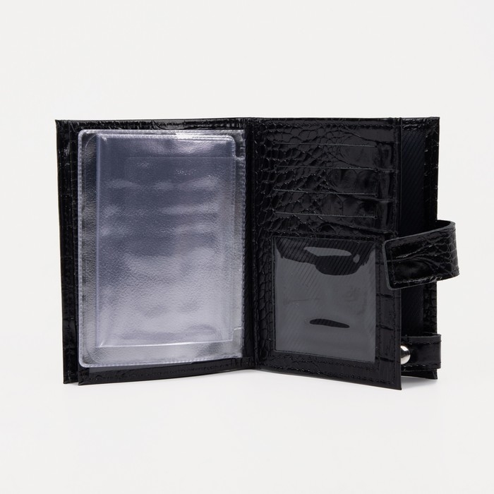 Портмоне мужское на магните для автодокументов и паспорта, цвет чёрный