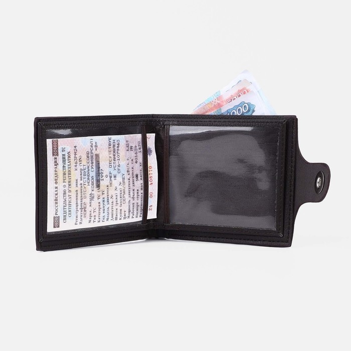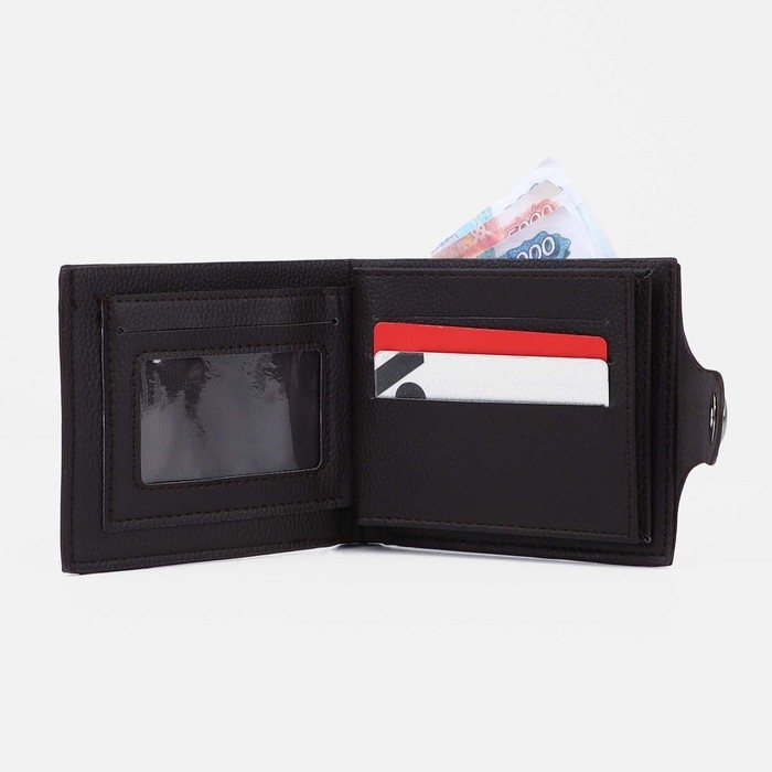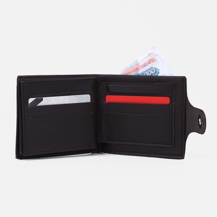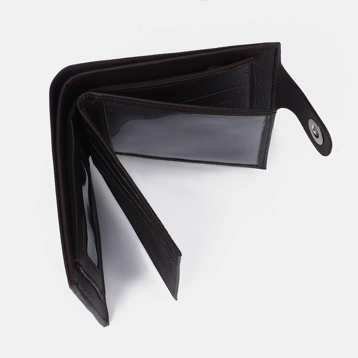 Портмоне мужское на магните, отдел для купюр, для монет, для карт, цвет тёмно-коричневый