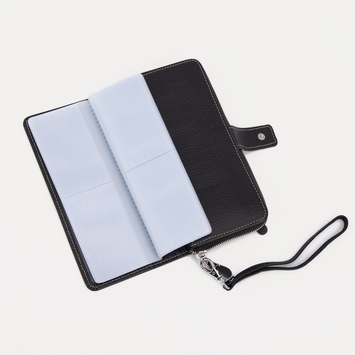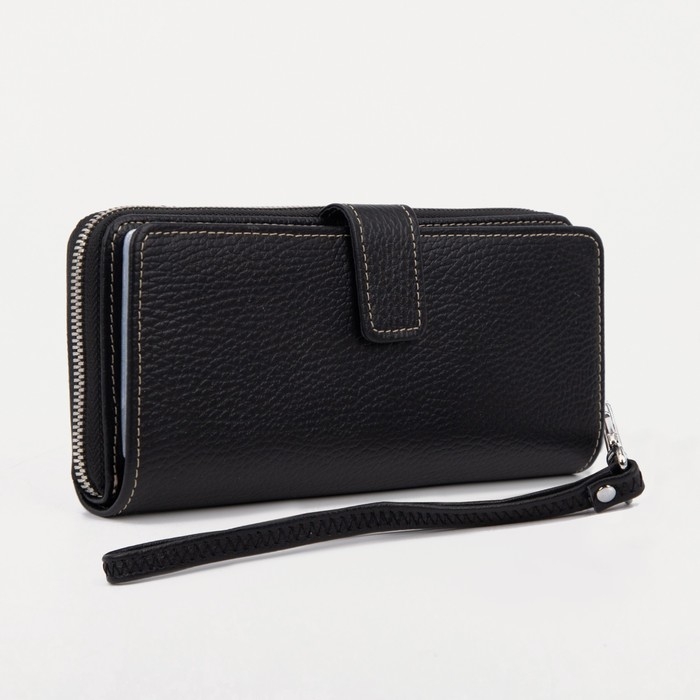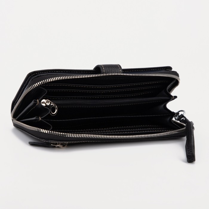 Портмоне мужское на молнии, для купюр, для карт, для монет, цвет чёрный