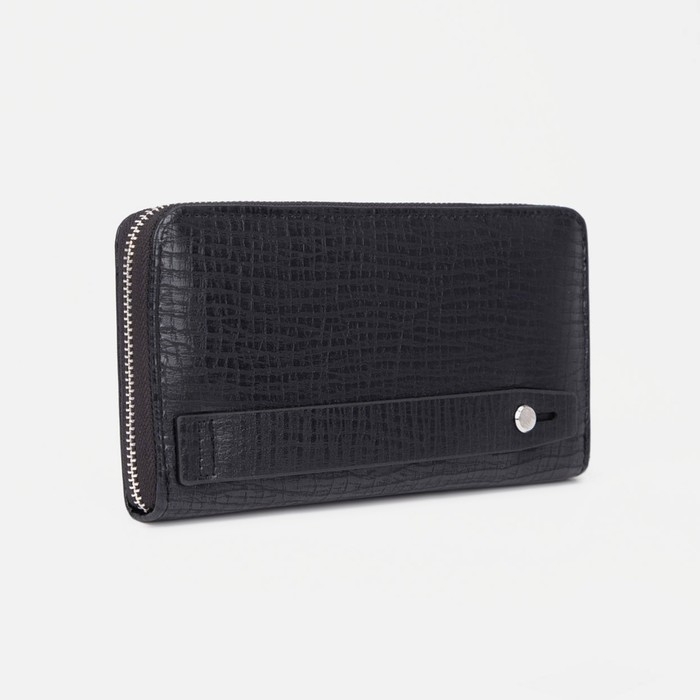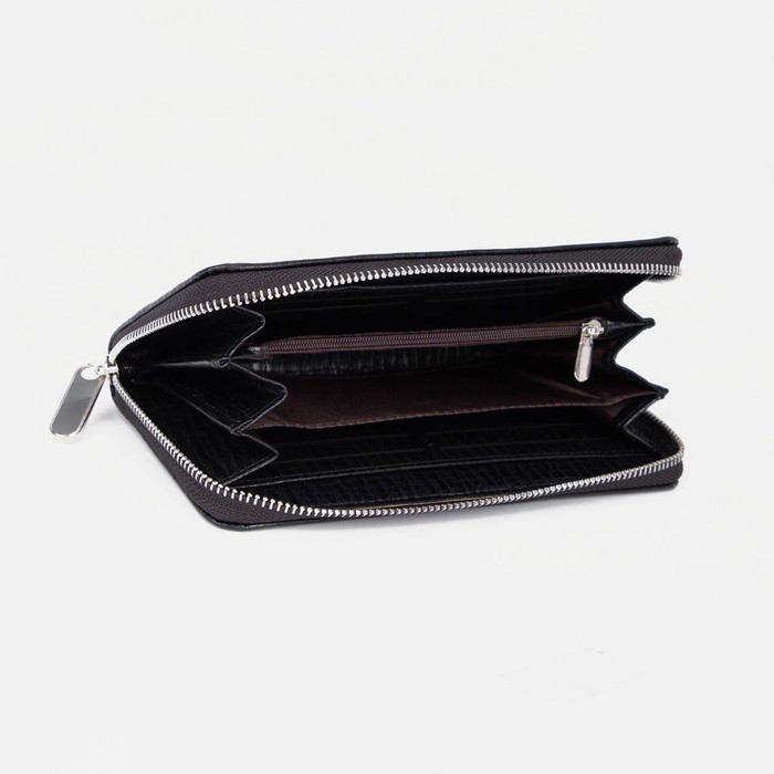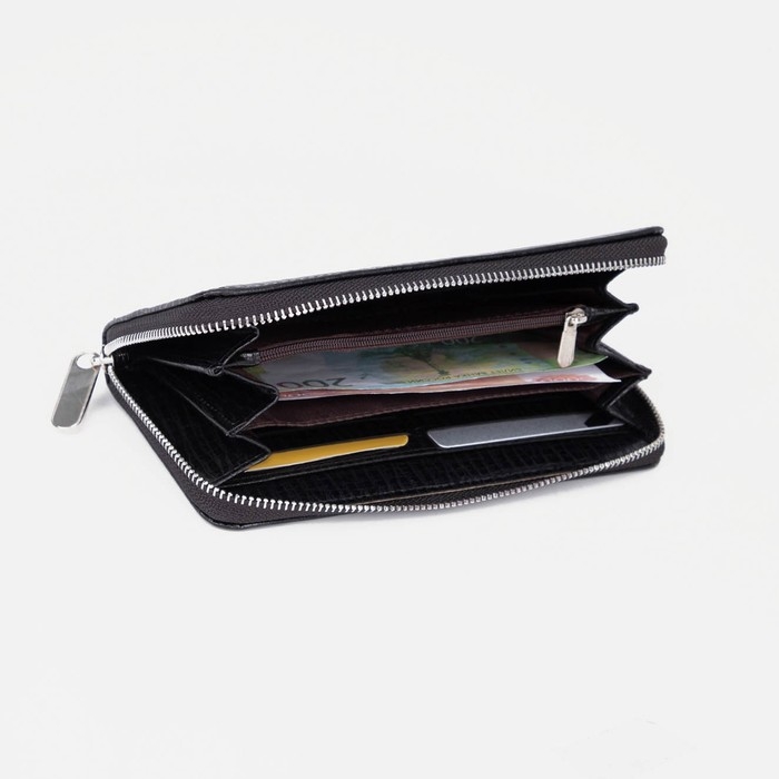 Портмоне мужское на молнии, отдел для купюр, для карт, для монет, цвет чёрный