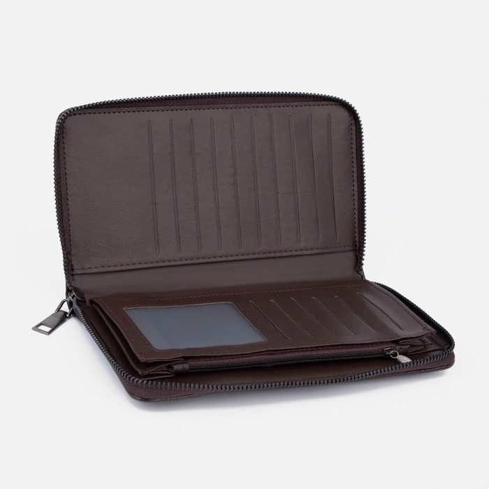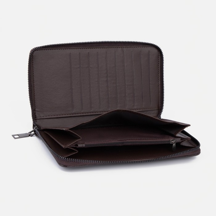 Портмоне мужское на молнии, отдел для купюр, для карт, для монет, цвет коричневый