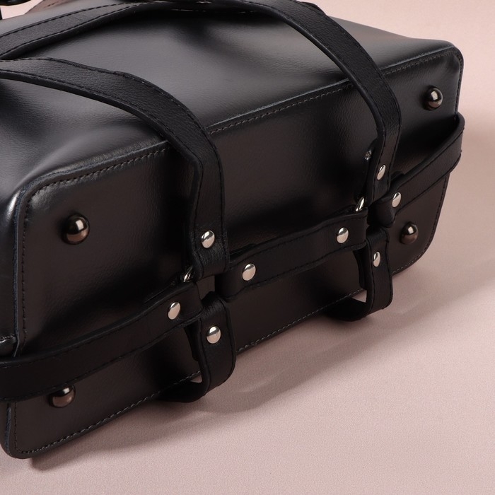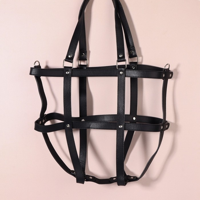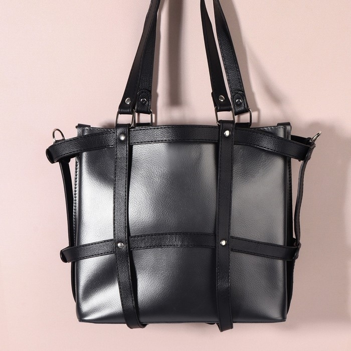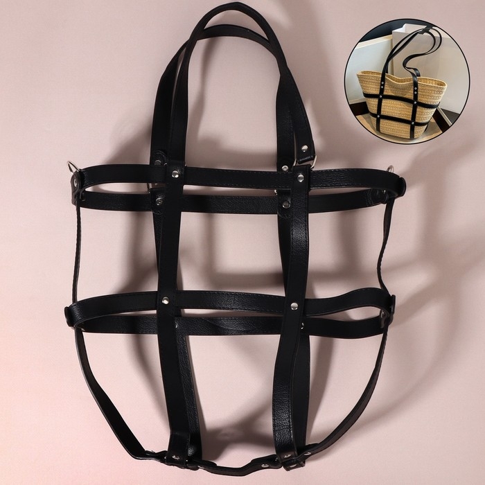 Портупея для сумки из искусственной кожи, 43 × 35 × 15 см, цвет чёрный/серебряный
