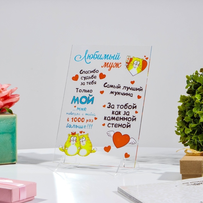 Постер на подставке "Любимый муж" оргстекло, 11,5 х 20 см