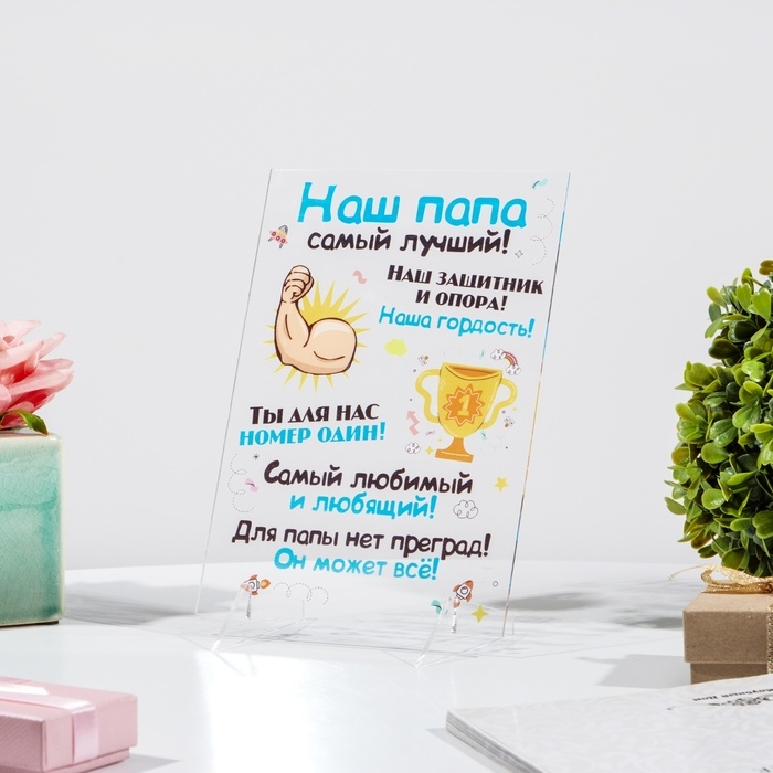 Постер на подставке "Наш папа самый луший!" оргстекло, 11,5 х 20 см