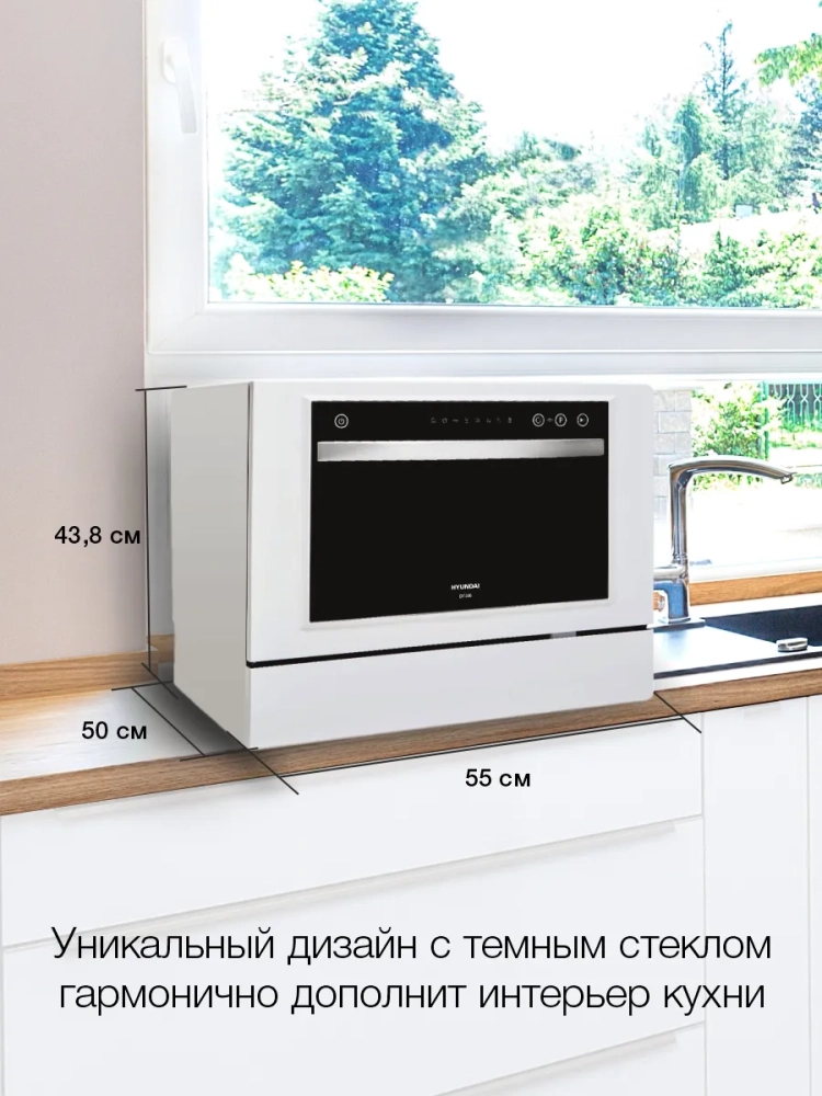 Посудомоечная машина Hyundai DT305 белый, компактная, максимальная загрузка 6 комплектов, защита от протечек AquaStop