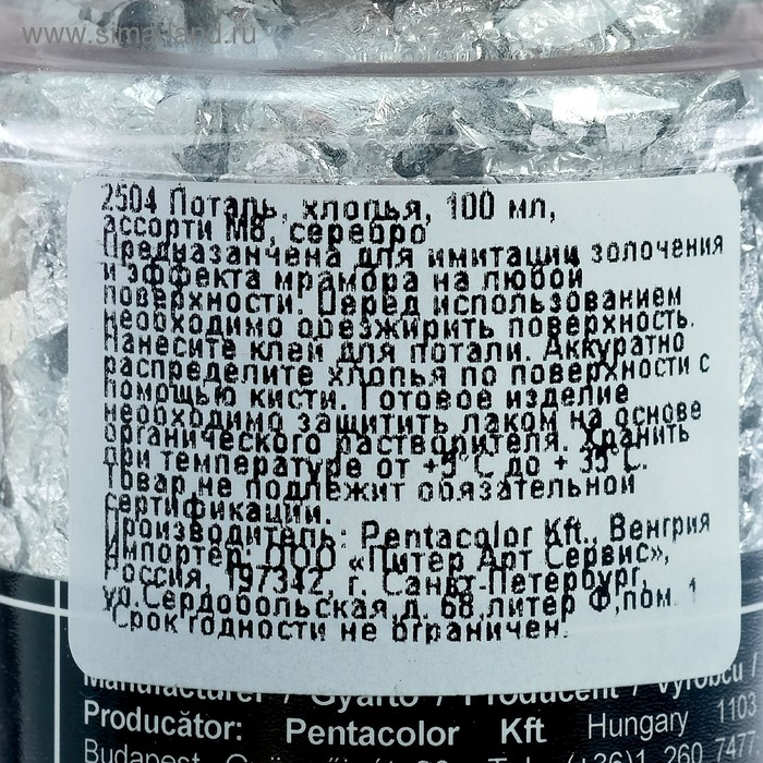 Поталь в хлопьях серебро, 100 мл Pentart (М8 2504)