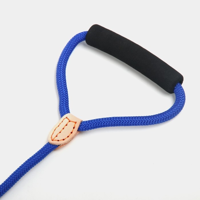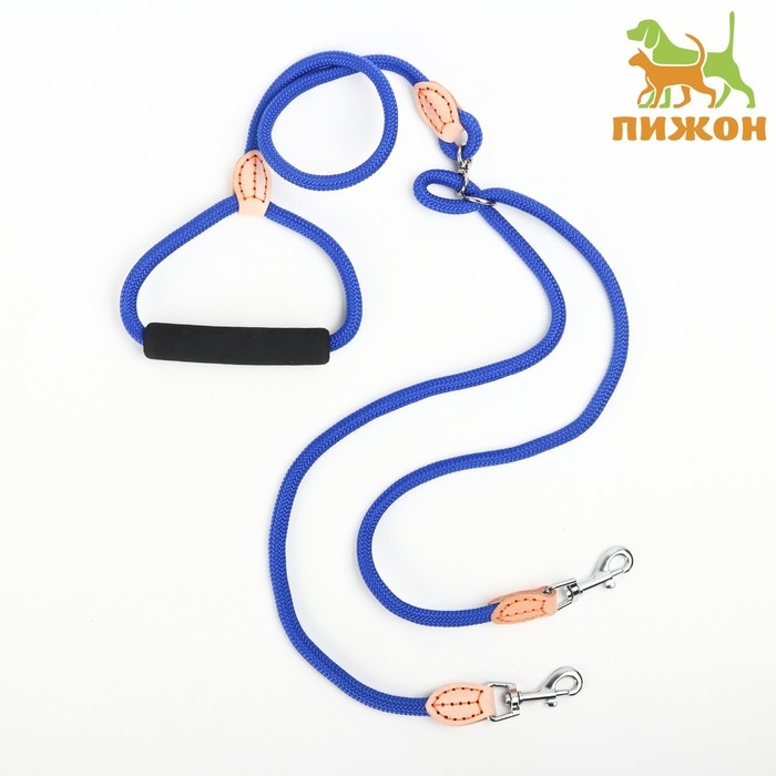 Поводок 8 мм со своркой на 2 собак, 73 + 2х57 см, полиэстер и натуральная кожа, синий