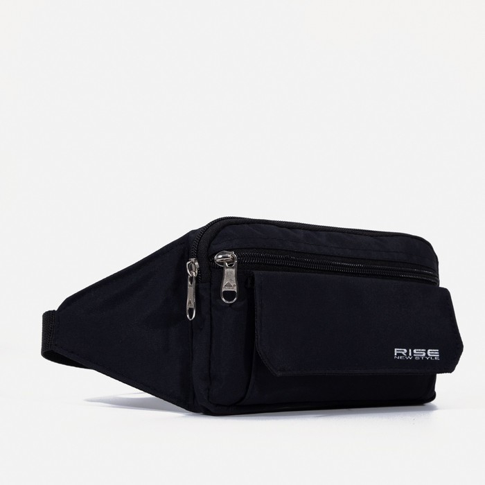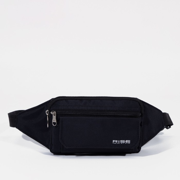Поясная сумка на молнии, 3 наружных кармана, цвет чёрный