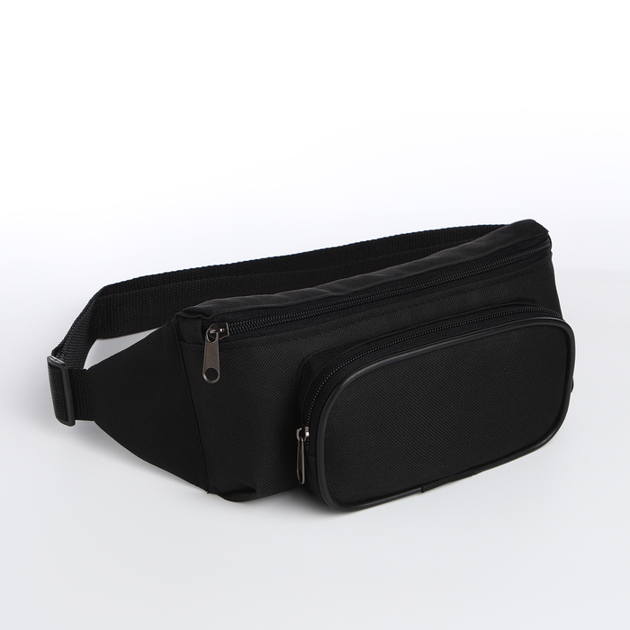 Поясная сумка на молнии, наружный карман, цвет чёрный