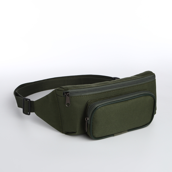 Поясная сумка на молнии, наружный карман, цвет хаки