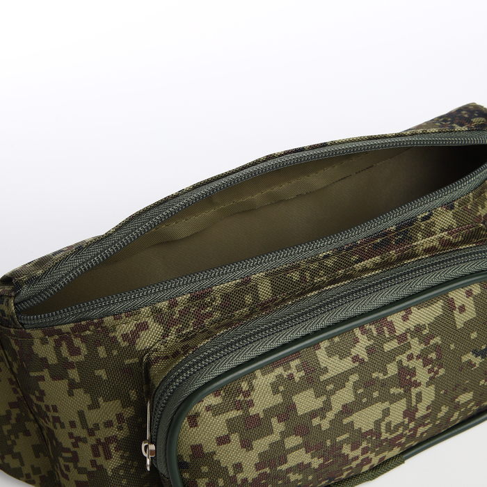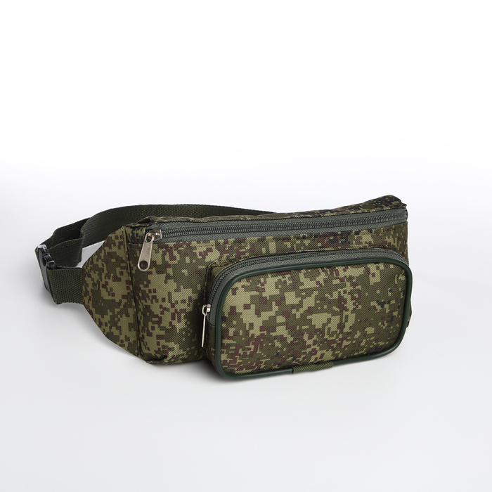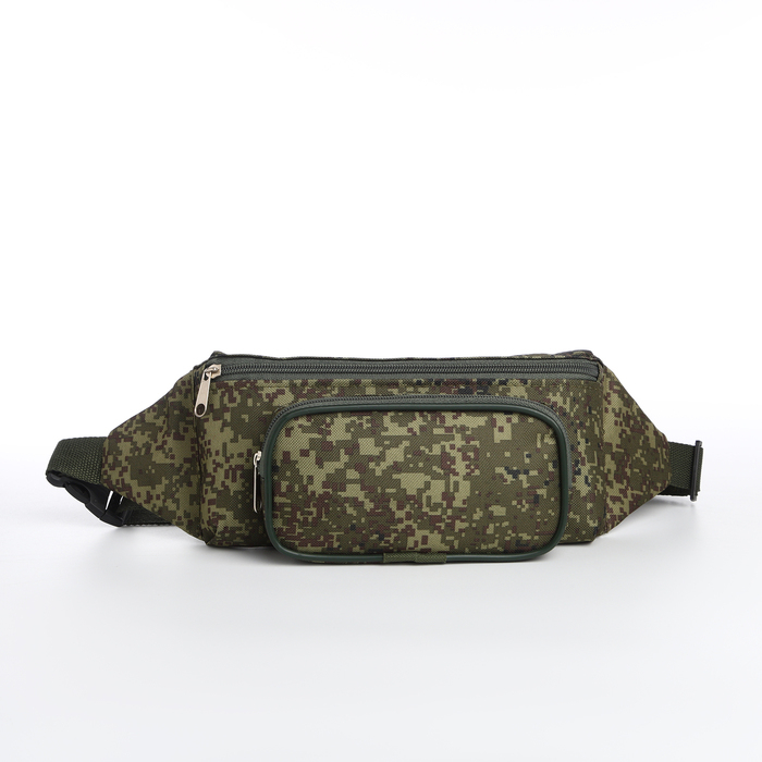 Поясная сумка на молнии, наружный карман, цвет зелёный/камуфляж