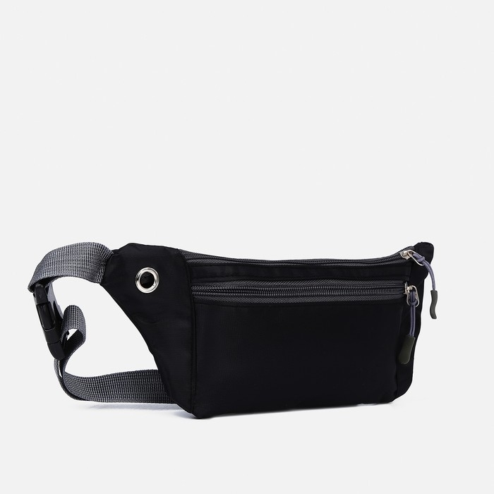 Поясная сумка на молнии, наружный карман, разъем для USB, цвет чёрный