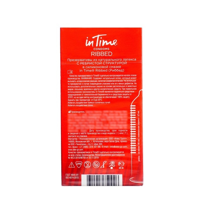 Презервативы IN TIME Ribbed, ребристые, 12 шт.