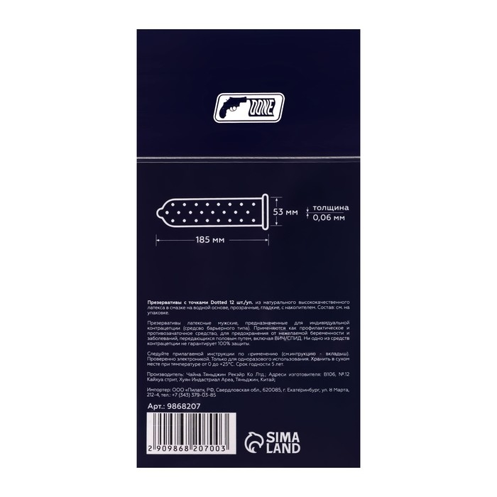 Презервативы точечные 12 штук имеют уникальную точечную текстуру, которая стимулирует чувствительные зоны вашего партнера и обеспечивает неповторимые ощущения во время секса. Ребристая поверхность презервативов точечных 12 штук также помогает продлить эрекцию и усилить оргазм.