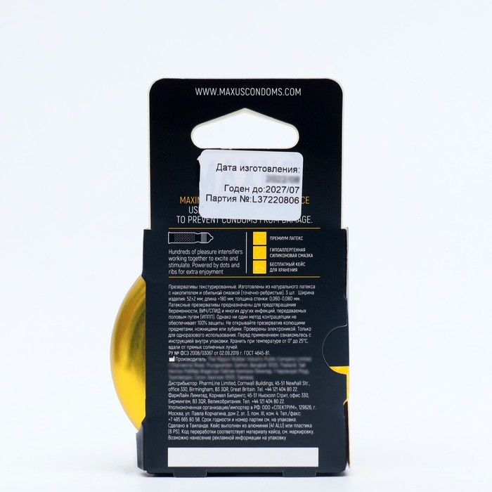 Английские презервативы с уникальным дизайном! Круглый и стильный металлический кейс яркого цвета легко открывается и закрывается - чтобы вы всегда были уверены, что презерватив цел и невредим.. Внутри кейса 3 шт. латексных презервативов в круглой упаковке с эксклюзивным рисунком под ваше особенное настроение. Maxus - это настоящий аксессуар с пользой для вашего удовольствия. MAXUS Special №3 - это коллекция презервативов с удивительной поверхностью и текстурой, состоящей из выпуклых точек и ребер на презервативе, благодаря которым лучше стимулируются самые чувственные зоны! Специально для новых ощущений. Среди нескольких коллекций бренда вас ждет масса вариантов оформления упаковок, сделанных с творческим и свежим взглядом. Все презервативы изготовлены из ультра мягкого латекса с обильной смазкой для максимального удовольствия.