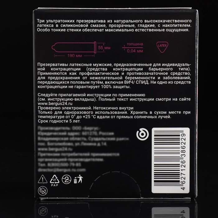 Стенки из мягкого и нежного латекса обеспечат максимально естественные ощущения для него и нее при занятии любовью. Увеличенный объем смазки уменьшает трение и обеспечивает легкое скольжение. Презерватив имеет накопитель для спермы, что создает удобство использования. Все этапы создания продукта контролируются и тестируются электроникой.