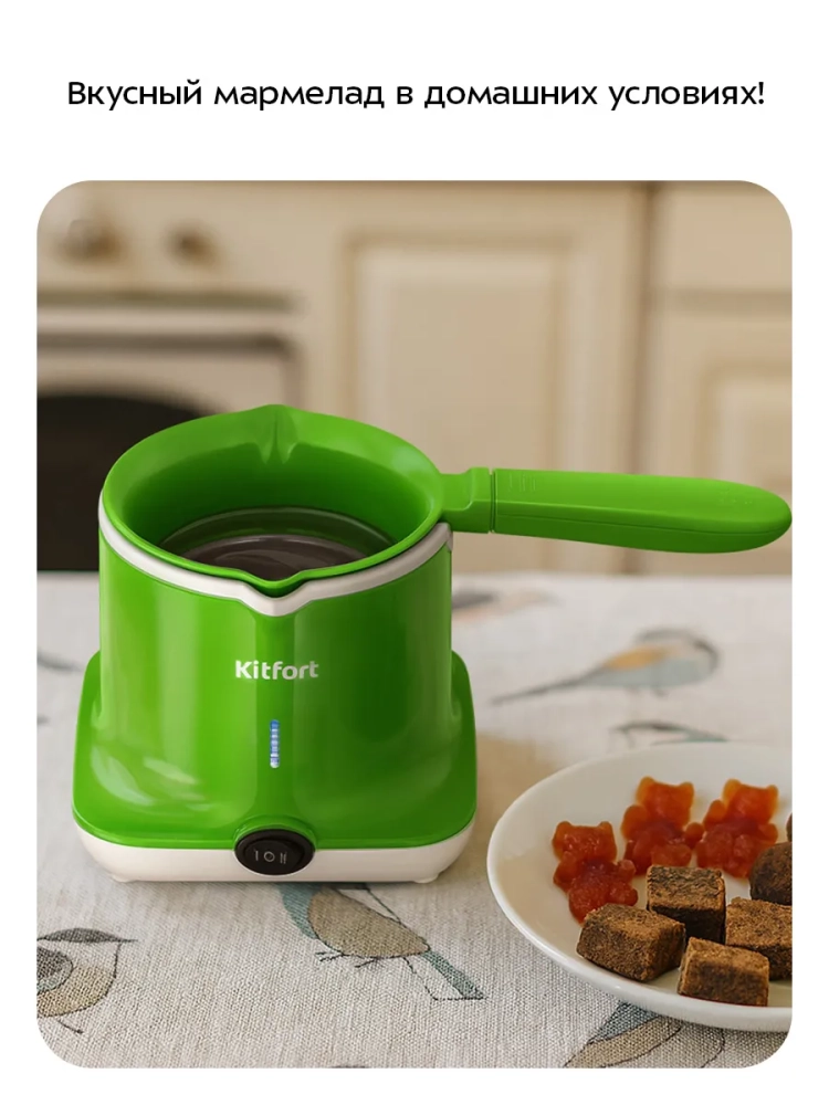 Прибор для приготовления мармелада и конфет Kitfort КТ-9884 поможет приготовить желейную массу или растопить шоколад для конфет.