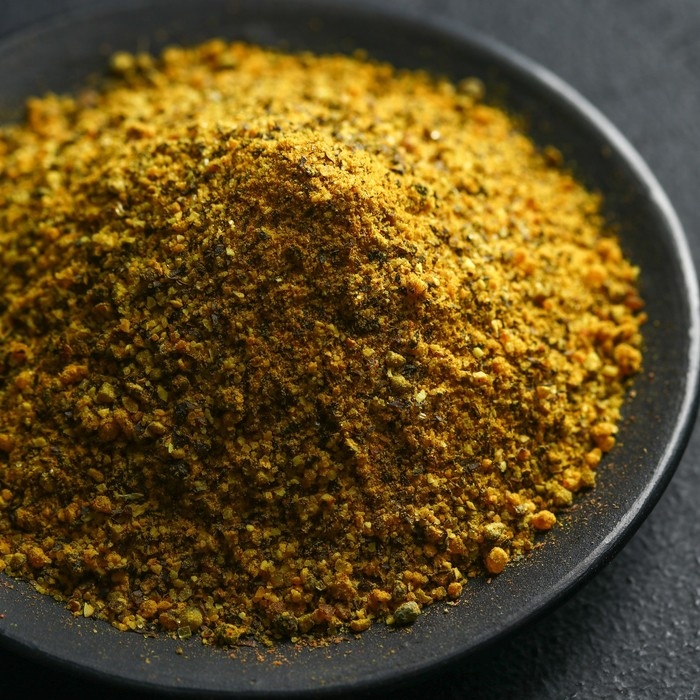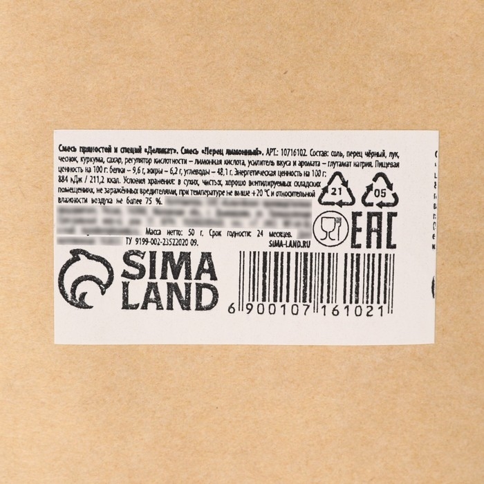 Состав: соль, перец чёрный, лук, чеснок, куркума, сахар, регулятор кислотности – лимонная кислота, усилитель вкуса и аромата – глутамат натрия.