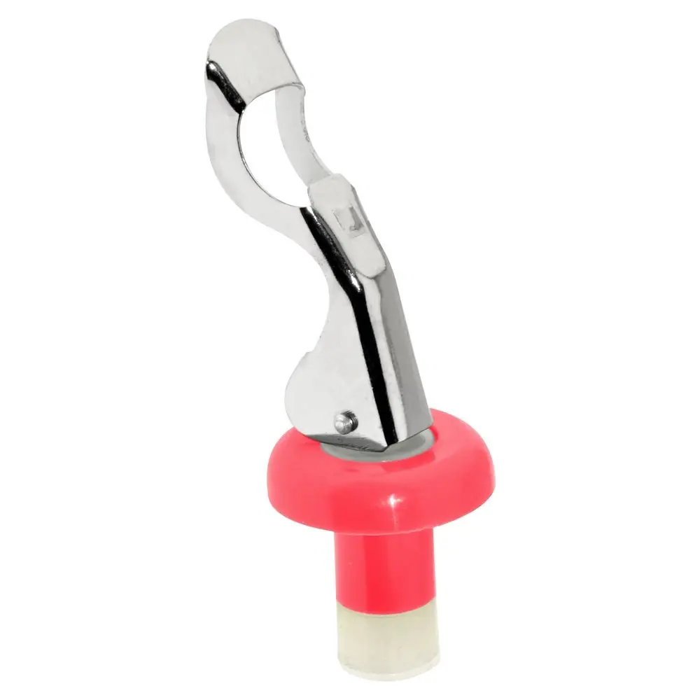 Изготовлена из пластмассы (полипропилен, силикон), зажим выполнен из металла с хромированным покрытием. Вставить пробку в горлышко бутылки и отпустить вниз зажим.